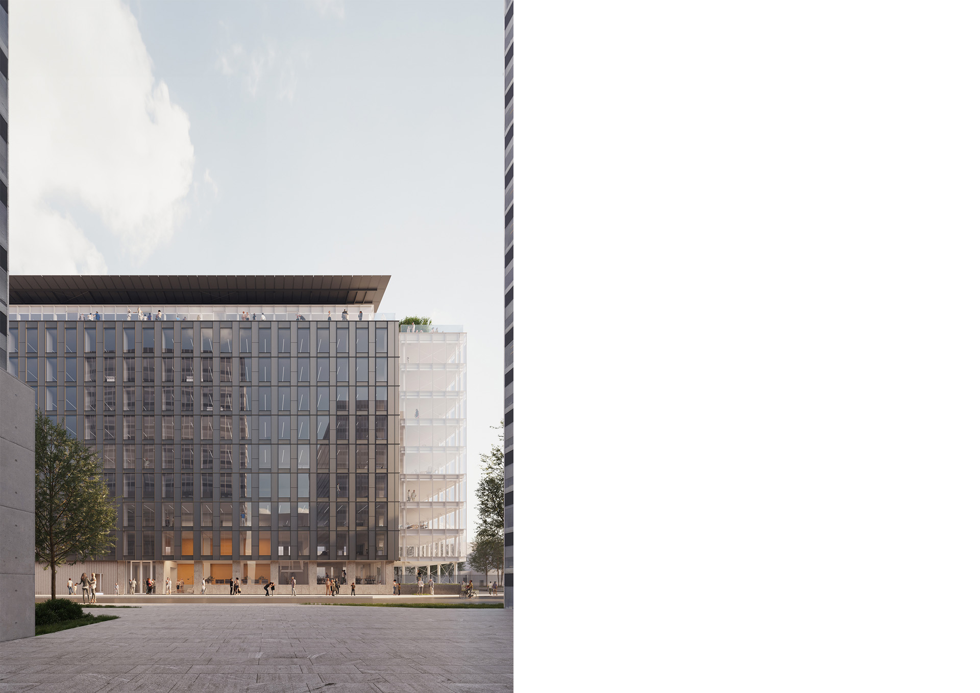 Our idea is to create a cluster strictly connected to the urban surrounding, designed as the combination of a “Vertical Tower” (5 levels) above a “Horizontal Tower” (8 levels) thus creating a distinctive step-like proile of a total of 13 levels, which distinguishes Tocqueville 13 from the other individual towers around. We feel that the very regular shape of the Tower with the expression of its regular geometry and its modulate grid, are absolutely right for the neighbourhood, in relation both to the surrounding buildings and to the “Milanese” identity that it